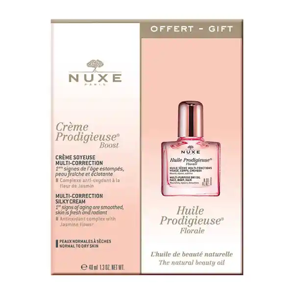 Crema Gel Multicorrección 40 mL + Aceite Huile Prodigieuse Floral 10 mL Este pack es la combinación perfecta La crema gel multicorrección tiene un complejo de antioxidante y flor de jazmín combate los efectos perjudiciales de la vida diaria y huile prodigieuse floral es un aceite que ilumina y suaviza 1 Und
