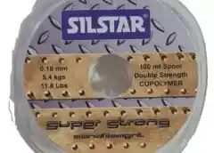 NYLON SILSTAR 0,18 S.STRONG MA Copolimero o Nylon de pesca Marca SILSTAR Modelo Super Strong Tipo Co-Polimero Color Marron Diámetro 0.18 mm Resistencia en Libras 11,8 libras Resistencia en Kilos 5,4 Kilos Metros de Nylon por Bobina: 100 Mts Peso cada bobina 36 grs Diametro bobina 8 cms Menor memoria del nylon dado bobina con mayor diametro a lo habitual 6 cms Con freno en cada bobina Alte resistecia a la abrasion Tecnonoguia de fusion de nylon con fibra elastica vegetal Resitencia total en nudos Anti Knot Rupture Opcional se puede pedir Seis bobinas unidas sumando 600 metros Peso de las 6 bobinas 216 grs Encaje de bobinas perfecto