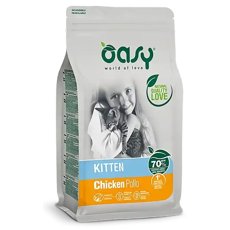 Proporciona a tus gatitos el cuidado que merecen con Oasy Lifestage Kitten Chicken, un alimento que no solo satisface sus necesidades nutricionales, sino que también promueve su bienestar general desde diferentes frentes: fortaleciendo su sistema inmunitario, mejorando su digestión y apoyando un crecimiento óptimo en esta crucial etapa de sus vidas.