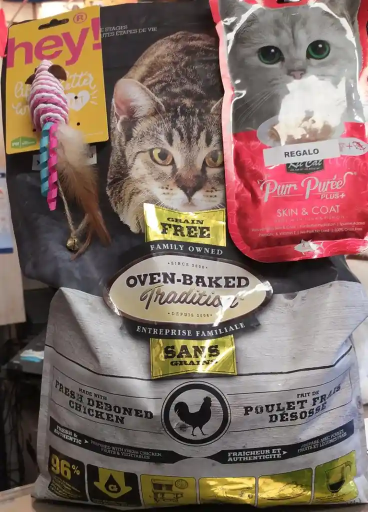 OFERTA ! OVEN BAKED TRADITION- gran free cat chicken de 4.54 kg + 1 Purn Puree (Skin Coat)+ HEY - Juguete para gatos raton rayado .... OFERTA ULTIMA UNIDAD... OFERTA!........