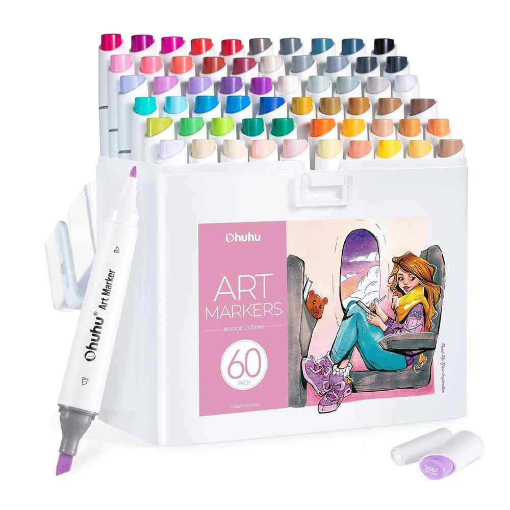 Este conjunto incluye colores bien seleccionados de varias familias de colores, que es un conjunto perfecto para principiantes de manga, ilustraciones de cómics, dibujos animados y diseños de vestuario. ¡Eleva tus proyectos al siguiente nivel con el set de marcadores OHUHU de 60 colores a base de alcohol y experimenta la diferencia que la calidad puede hacer en tu arte!