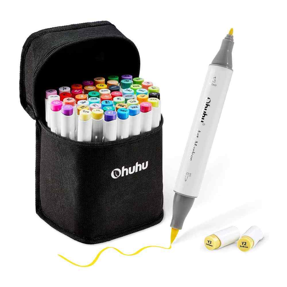 Descubre la versatilidad y calidad del set de marcadores OHUHU de 48 colores a base de alcohol, diseñado para satisfacer todas tus necesidades artísticas. Estos marcadores ofrecen una experiencia de color superior y precisión en cada trazo. SET INCLUYE: Muestrario de colores.Swatch para que hagas tu propio muestrario de colores.Lámina protectora para no traspasar y manchar tu sketchbook.Bolso Ohuhu para transportar marcadores