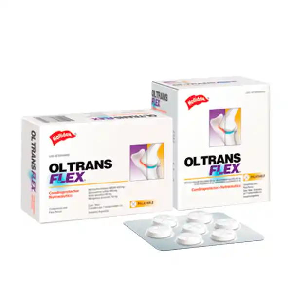 Contiene 1 Comprimido. Para el Cuidado de Articulaciones Holliday Ols Trans Flex es un Condroprotector en Forma de Comprimidos Masticables Para Perros Que Ayuda a Conservar la Salud Articular y Previene Procesos Degenerativos Osteoarticulares.