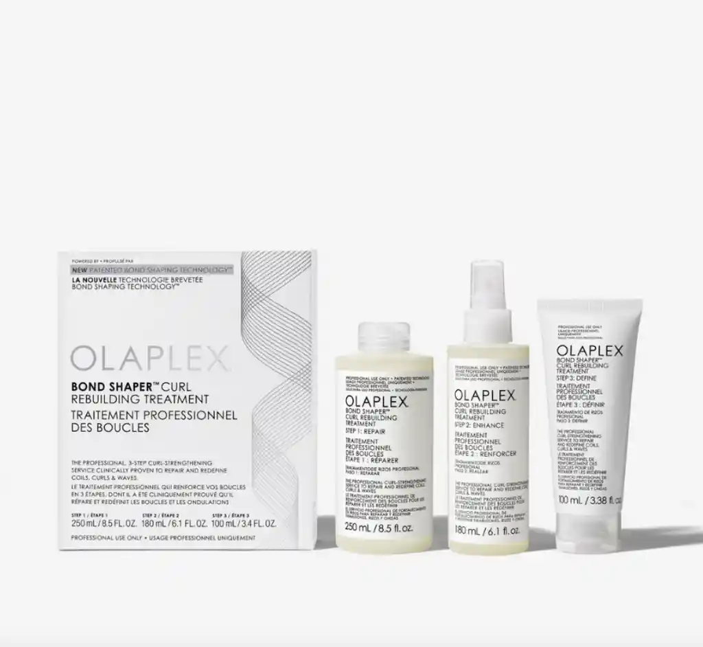 Tratamiento profesional en tres pasos que repara y define rizos, ondas y bucles mediante la tecnología patentada Bond Shaping™ de Olaplex. Fortalece enlaces disulfuro, controla el frizz hasta por 15 lavados y mejora la retención de rizo y su brillo natura