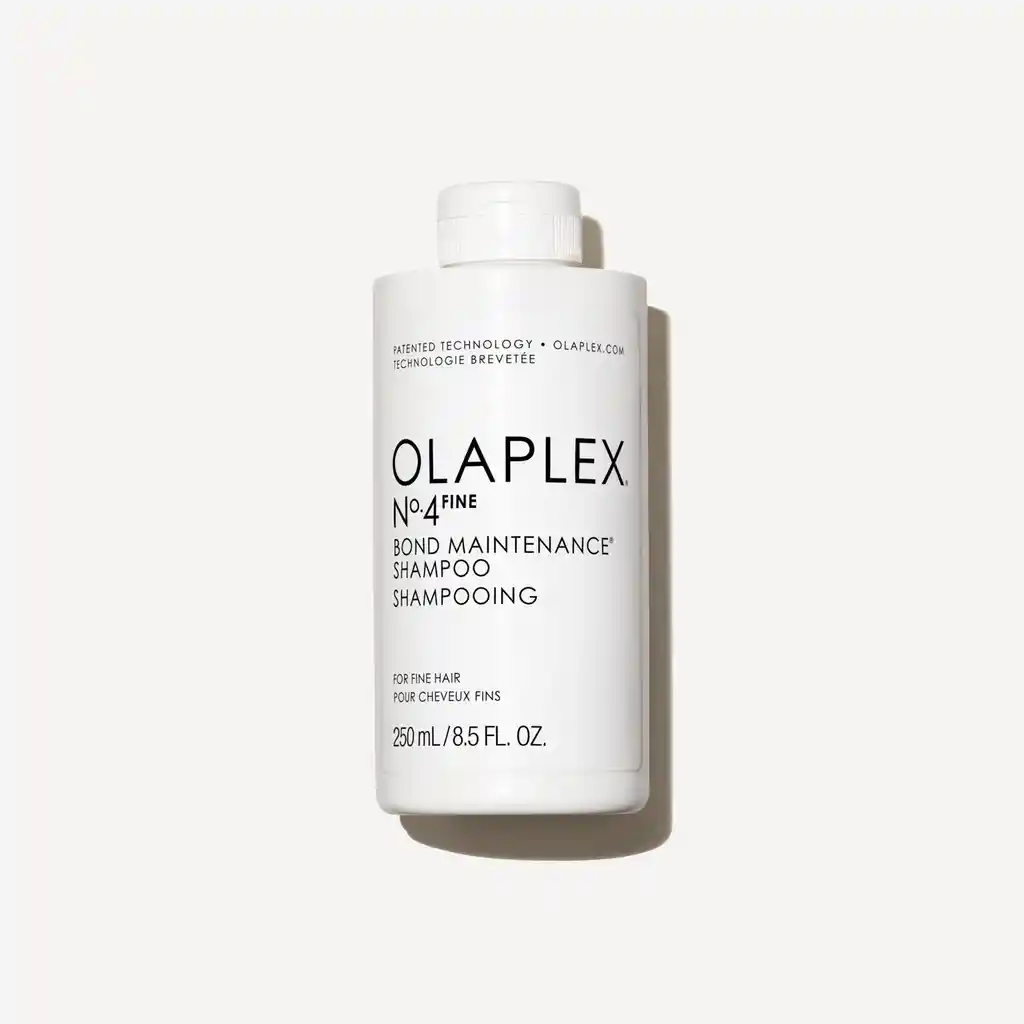 Shampoo ligero que limpia, repara e hidrata el cabello fino sin agregar peso. OLAPLEX Nº4 Fine Bond Maintenance Shampoo limpia suavemente mientras repara, hidrata y fortalece el cabello fino, sin agregar peso ni residuos. Su fórmula profesional con Bond Building™ Technology restaura los enlaces capilares dañados, dejando el cabello más fuerte, brillante y con movimiento natural. Ideal para cabellos finos o sensibilizados que necesitan fuerza y volumen sin perder ligereza. Repara desde el interior, aportando suavidad, brillo y un aspecto saludable.