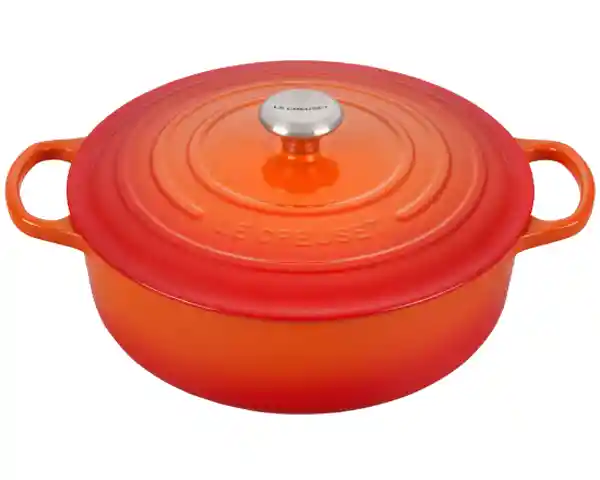 Prepara Risottos Pastas o Estofados en Esta Espectacular Cocotte Baja de 30 cm Elaborada en Hierro Colado Esmaltado Distribuye Uniformemente el Calor y Conserva Más Tiempo Las Temperaturas. Es Ideal Para Llevar a la Mesa y su Vitrificado Interior es Fácil de Limpiar Garantía de Por Vida.
