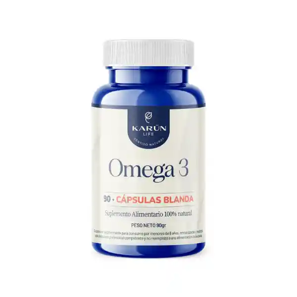 Omega 3 de cápsula blanda. BENEFICIOS: Promueve salud cardiovascular óptima. Mejora la función cerebral y cognitiva. Apoya la salud ocular y visual. Reduce la inflamación y rigidez. Contribuye a una piel saludable. Cada cápsula contiene 189,24 mg de EPA (ácido eicosapentaenoico) y 124,5 mg de DHA (ácido docosahexaenoico). Modo de consumo: 3 cápsulas diarias.