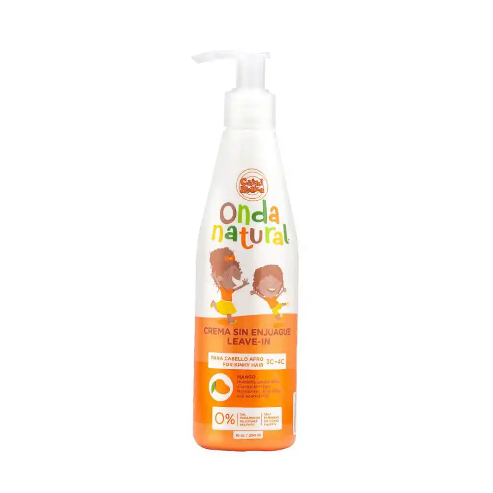 Onda Natural Crema sin enjuague Mango está formulada especialmente para niños y niñas con el pelo rizado o afro 3C-4C. Enriquecida con mango. Humecta, da brillo y controla el frizz. Beneficios Onda Natural Crema sin enjuague Mango está formulada especialmente para niños y niñas con el pelo rizado o afro 3C-4C. Enriquecida con mango. Humecta, da brillo y controla el frizz. Formulado libre de sulfatos, parabenos, siliconas, sal, aceite mineral, DEA, colorantes y formol. Para cabello rizado 3C-4C. Cómo Utilizar Aplicar sobre el cabello seco o húmedo con las manos y asegurándose que quede uniformemente distribuido. Estilo como de costumbre. ¡No enjuague!