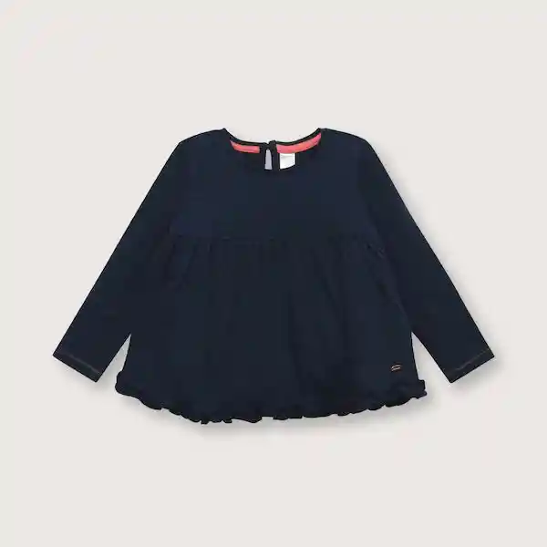 Polera de Jersey Slub 100% Algodón Manga Larga Con Mini Vuelos en el Pecho y Mangas Color Navy