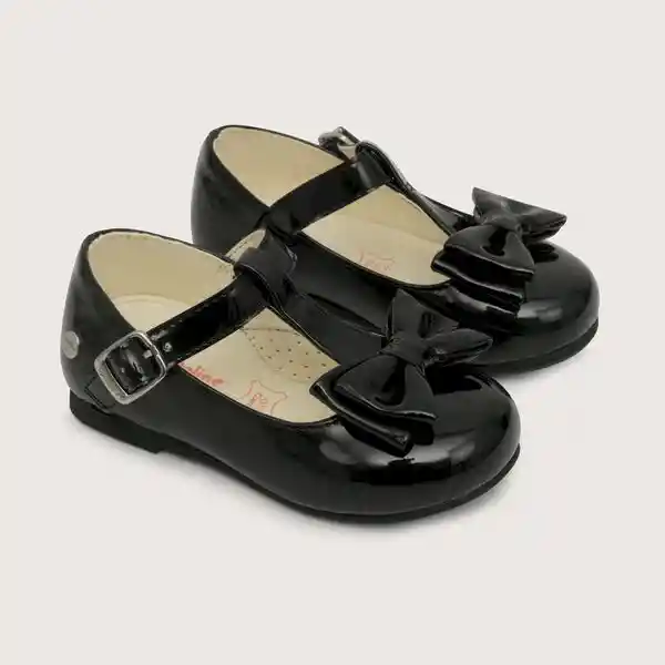 Par. Reina Vestir de Niña Charol Color Negra Con Moño. Sistema de Ajuste Con Hebilla.