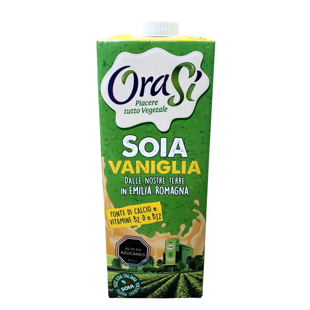 Bebida de Soya OraSí Vainilla 1 litro, con alto contenido en vitaminas y calcio, bajo en colesterol y grasas. Una excelente alternativa para nutrir tu cuerpo sin componentes de origen animal. Además, la bebida de soya, ayuda a que el sistema circulatorio funcione correctamente. Ingredientes:Agua, azúcar de caña, semilla de soya descascarada (5, 7%), carbonato de calcio, fibra cítrica vegetal, sal de mar, estabilizante (goma de gellan), aroma natural, sabor natural de vainilla, vitaminas (riboflavina (B2, D, B12). ALÉRGENOS: CONTIENE SOYA. Vegano