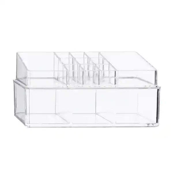 De Cosméticos y Joyero de Plástico Transparente. La Parte Superior es Removible Por lo Que Sirve Para Organizar Maquillajes Cremas Medicamentos o Cualquier Tipo de Artículo de Baño.
