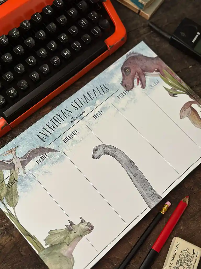 Planificador Semanal. Formato 31x18.5 cm. 55 hojas por taco Papel Blanco 140g. Base cartón madera gris 1.2mm