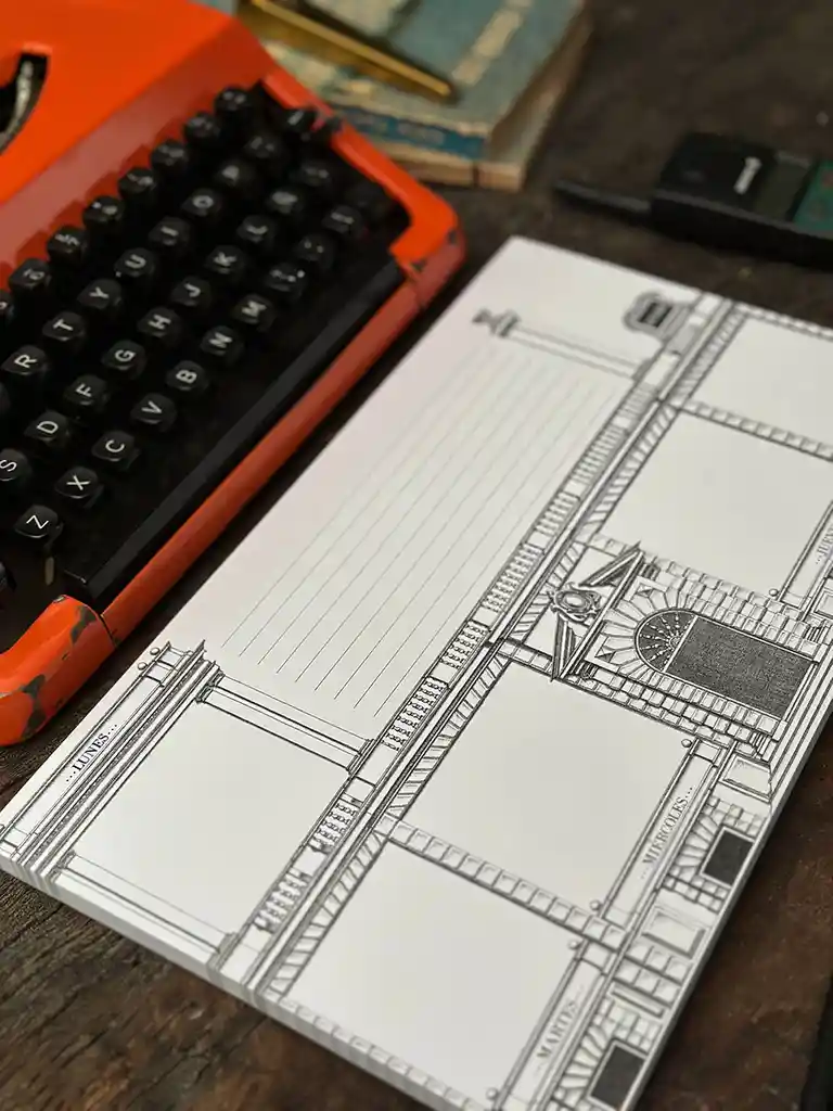 Planificador Semanal. Formato 31x18.5 cm. 55 hojas por taco Papel Blanco 140g. Base cartón madera gris 1.2mm