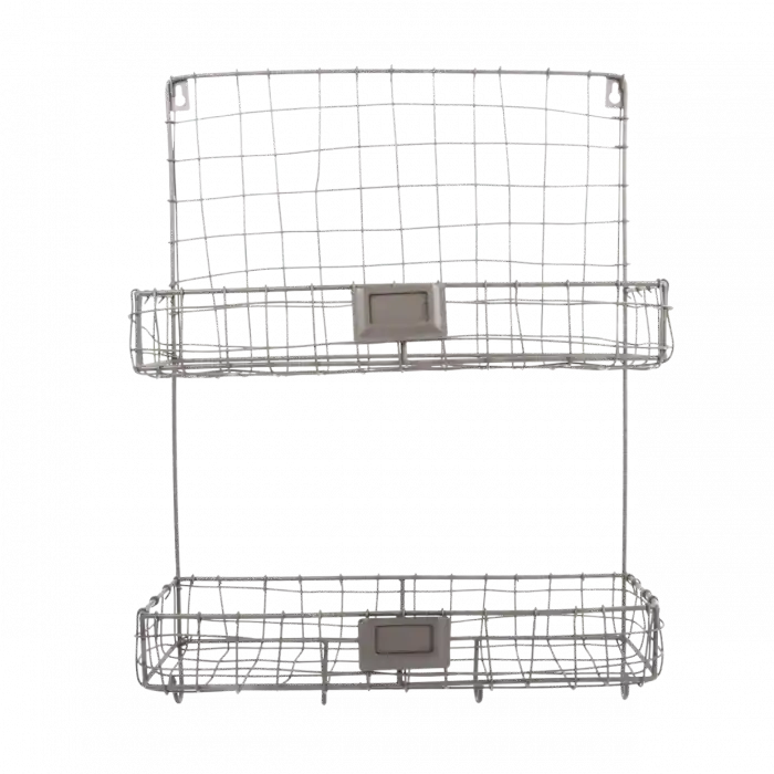 Organizador para muro hecho de alambre de hierro de 2 niveles. Ideal para decorar o guardar cosas en tú pieza, oficina, cocina, baño, taller u otro. Ancho 39.3 cms / Alto 52 cms / Profundidad 13.9 cms