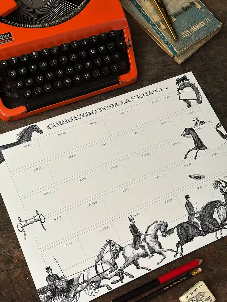Planificador Mensual Formato 32x44 x 0.3 cm 12 hojas por taco Papel Bond 140g Base cartón madera gris 1.2mm