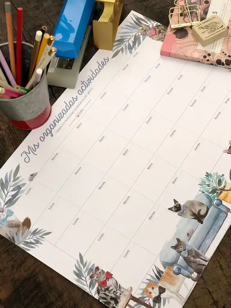 Planificador Mensual Formato 32x44 x 0.3 cm 12 hojas por taco Papel Bond 140g Base cartón madera gris 1.2mm