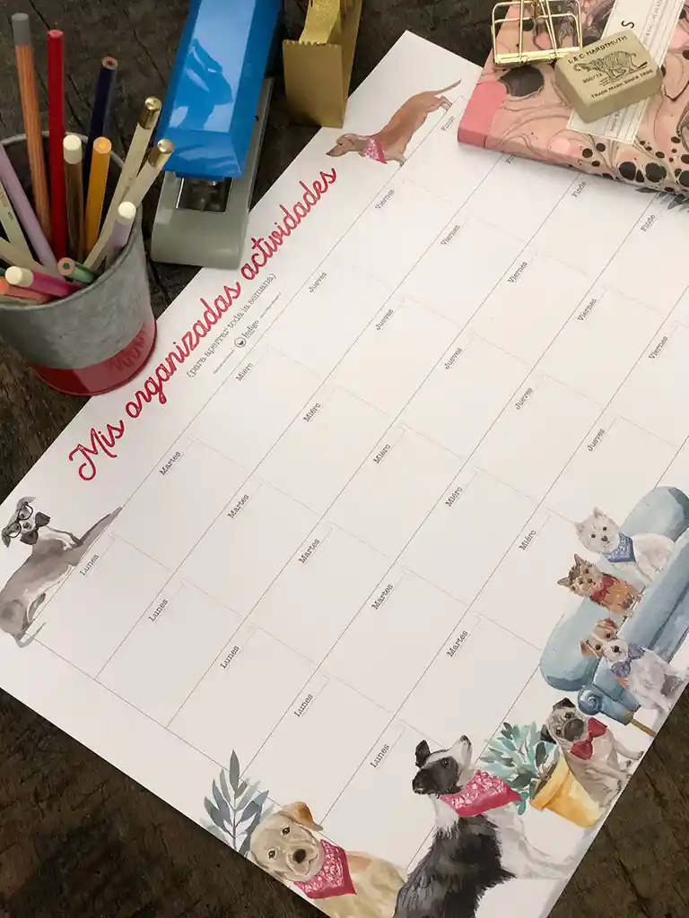 Planificador Mensual Formato 32x44 x 0.3 cm 12 hojas por taco Papel Bond 140g Base cartón madera gris 1.2mm