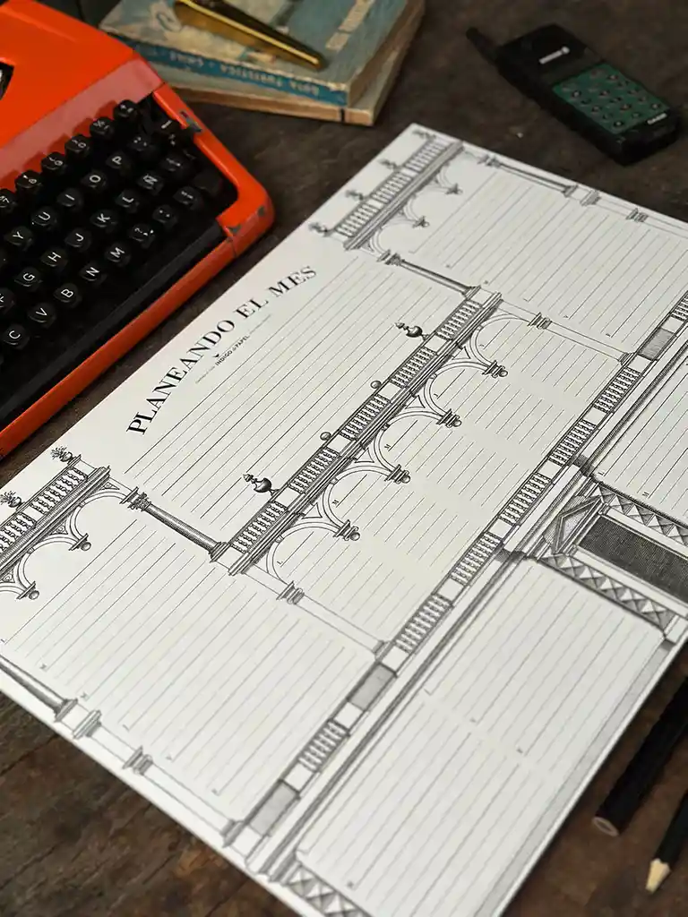Planificador Mensual Formato 32x44 x 0.3 cm 12 hojas por taco Papel Bond 140g Base cartón madera gris 1.2mm