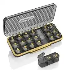 Caja organizadora de medicamentos para la semana con tres tiempos.