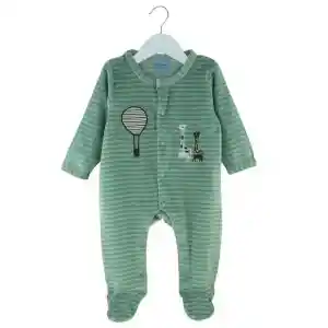 Enterito de Plush Bebé Niño. Tela ultra suave Cuello Redondo Color Verde con Jirafas bordadas Modelo con broches en toda la parte delantera y entre piernas para facilitar la postura y muda de pañal de tu bebé.