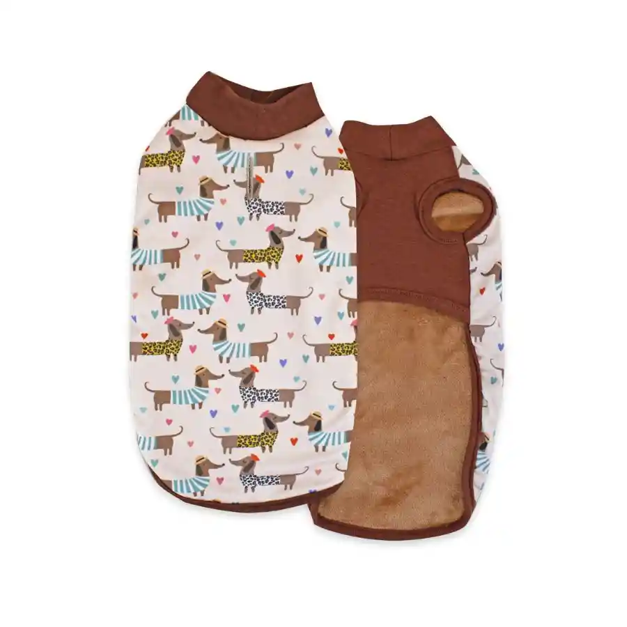 Jersey de textura suave con estampado de perritos salchicha para perros – Cómodo, funcional y estiloso ¿Tu perro ama andar siempre con estilo y estar listo para cualquier ocasión? El Jersey para perros Doble Teckel de Outech es la prenda perfecta para acompañarlo en su día a día. Ideal para los paseos por la plaza, salidas en familia o simplemente para estar abrigadito en casa. Este jersey destaca por su textura ultra suave, que lo hace increíblemente cómodo para tu mascota. Su diseño elástico asegura que se ajuste perfectamente a la silueta de tu perro sin incomodarlo. Además, el cuello alto le brinda mayor cobertura para mantenerlo calentito, especialmente en los días más fríos. Con un elegante color marrón y un encantador estampado de perritos salchicha (teckel), tu perro será el centro de todas las miradas. Incluye un agujero en la parte posterior para que puedas enganchar fácilmente la correa al collar o arnés, asegurando paseos cómodos y seguros. ¿Y lo mejor? Es fácil de lavar para mantenerlo siempre en perfectas condiciones. Recomendamos lavarlo a mano para garantizar su durabilidad. Este jersey está hecho con materiales de alta calidad, pensado para durar y acompañar a tu perro en todas sus aventuras. Características clave: Jersey cómodo y suave: ideal para mantener a tu perro calentito y abrigado. Diseño elástico: se adapta perfectamente a su cuerpo sin apretarlo. Cuello alto: mayor cobertura para protegerlo del frío. Perfecto para el uso diario: cómodo para paseos o estar en casa. Elegante y único: color marrón con estampado de perritos salchicha. Agujero para correa: práctico para enganchar el arnés o collar. Fácil mantenimiento: lavable a mano para mayor durabilidad. Material de alta calidad: pensado para el confort y seguridad de tu mascota. Modo de uso: Introduce la cabeza de tu perro por el orificio central y las patas delanteras por los orificios más pequeños que se encuentran a los lados. Lava a mano. No utilices secadora. Materiales: 100% poliéster. Medidas: Talla Largo (cm) Ancho (cm) Grosor (cm) 20 20 15 2 25 25 16 2 30 30 18 2 35 35 20 2 40 40 20 2 Color: café y estampado de perritos. Haz que tu perro luzca adorable y se sienta cómodo al mismo tiempo con este increíble jersey. ¡Agrégalo al carrito y dale a tu peludo el estilo que se merece!