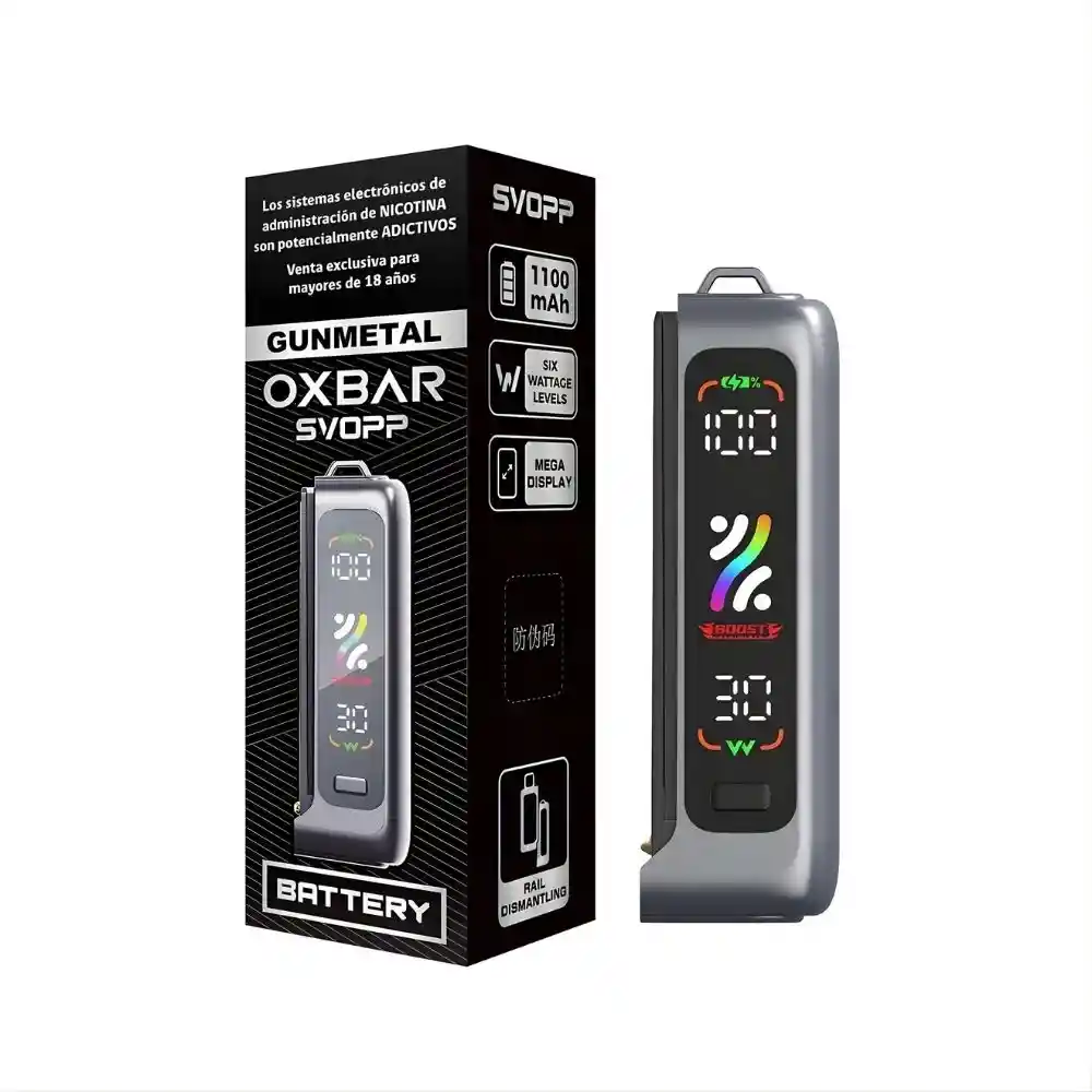 Oxbar Svopp Batería recargable diseñada para ofrecer un uso práctico y controlado en el día a día. Cuenta con batería interna de 1.100 mAh, carga rápida USB-C y ajuste de potencia con hasta 6 niveles. Incorpora pantalla digital que muestra batería y potencia en tiempo real. Compatible con Oxbar Svopp Recarga 25K. Diseño compacto, moderno y fácil de usar. No incluye recarga.