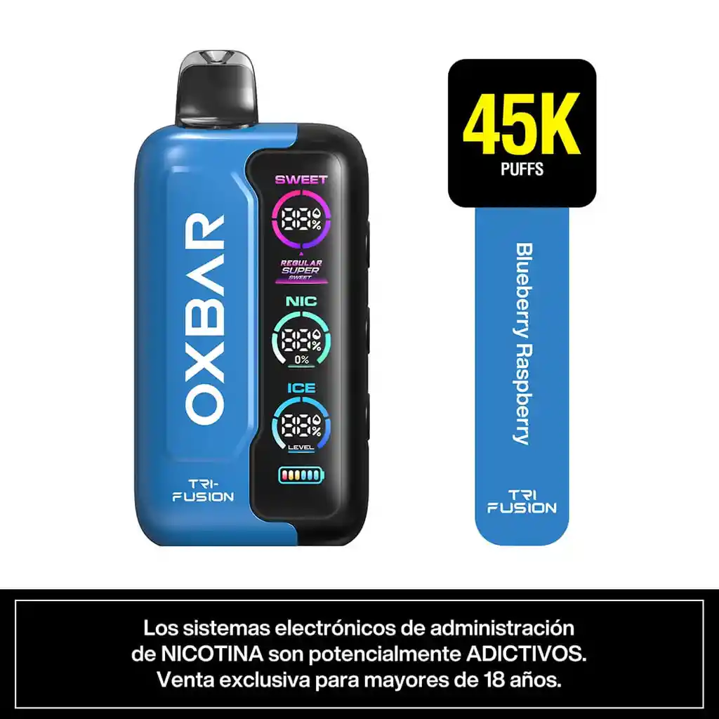 Descubre una nueva forma de vapear con el Oxbar Tri Fusion 45K Puffs. Gracias a su exclusivo Triple Tank Control, puedes modificar nicotina, intensidad de sabor y frescura (ice) de manera independiente, logrando siempre la mezcla perfecta según tu preferencia. Innovación, personalización y máxima duración en un solo dispositivo.