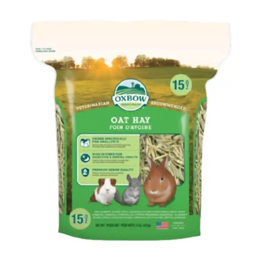Oxbow Heno de Avena es el favorito de muchos conejos, cobayas y chinchillas. El heno de avena se cosecha antes de que la avena se convierta en una semilla, proporcionando cáscaras saladas llenas de sabor y fibra. Tiene un aroma que estimulará el apetito de tu mascota y lo animará a comer más heno. Su mascota debe tener heno de pasto ilimitado todos los días. CARACTERÍSTICAS Oxbow Heno de Avena tiene una textura crujiente y sabor sabroso que a las mascotas les encanta Cosechado fresco de nuestra familia de granjas Clasificados a mano y empaquetados a mano con cuidado Proporciona fibra esencial para apoyar la salud digestiva y dental. Sin colorantes, sabores ni conservantes artificiales Apto para conejos, cobayos (cuy) y chinchillas en toda etapa de vida. INGREDIENTES Heno de Avena ANALISIS GARANTIZADO Proteína cruda (min) 7,00% Grasa cruda (min) 1,50% Fibra cruda (máx.) 32,00% Humedad (max) 15,00%