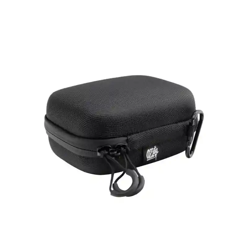 Estuche mediano OZ.eta 2024 con control de olores y filtro de carbón activado. Cierre hermético y compartimientos internos para organizar accesorios. Incluye mosquetón. Diseño monocromático. Medidas 14x10,5x6,5 cm. Incluye accesorios variados al azar.