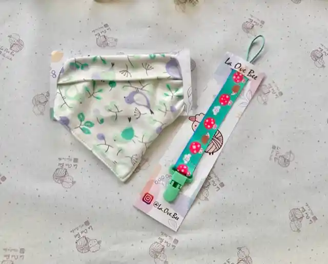 Babero algodón más pórtatete cinta. Incluye bolsa presentación de regalo