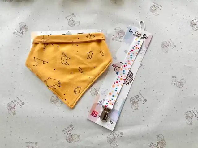 Babero algodón más pórtatete cinta. Incluye bolsa presentación de regalo