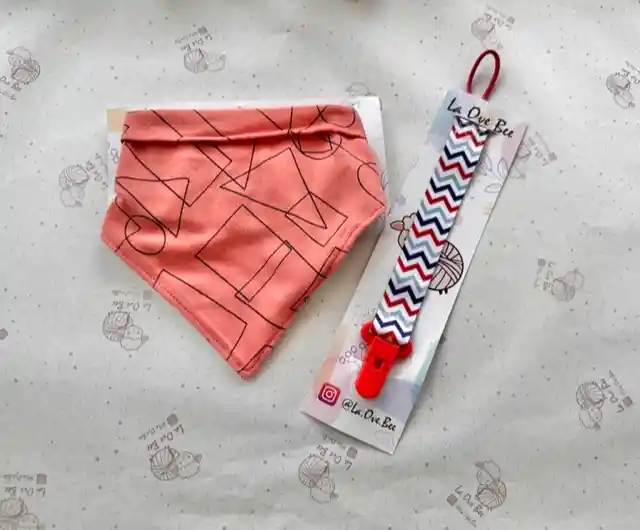Babero algodón más pórtatete cinta. Incluye bolsa presentación de regalo