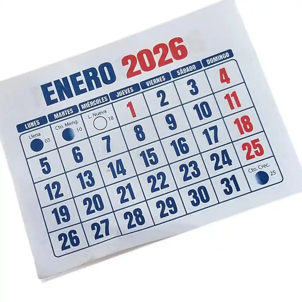 Pack 10 Calendarios chicos Tamaño 7cmx5.5cm 12 meses 2026 FERIADOS MARCADOS EN ROJO FASES DE LA LUNA