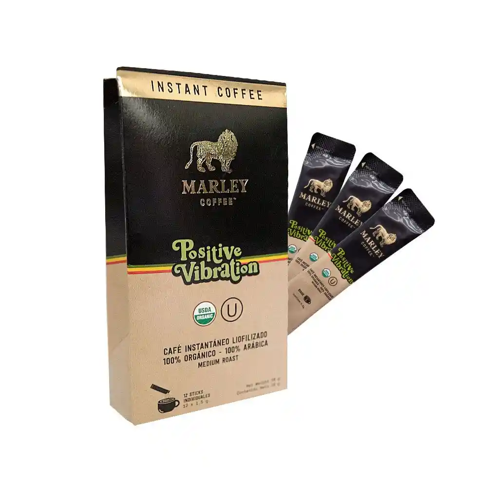 ¿Quieres disfrutar un café delicioso en cualquier lugar? Con el nuevo Pack Stick Positive Vibration y sus 12 Stick de café que rinden c/u para una taza de café de 120 ml. Prepara donde quieras un buen café orgánico, de tostado medio y 100% de origen colombiano. Positive Vibration es un café liofilizado de fácil preparación con gran sabor a cafetales colombianos que realzan su fuerza. En esta variedad de tueste medio, se pueden encontrar notas ácidas, propias del café arábico, sabores intensos y un cuerpo potente bien determinado, que envuelve de manera equilibrada todo su gusto y aroma. Este pack contiene: - 12 Stick individuales de café liofilizado positive Vibration (c/u rinde para una taza de 120 ml).