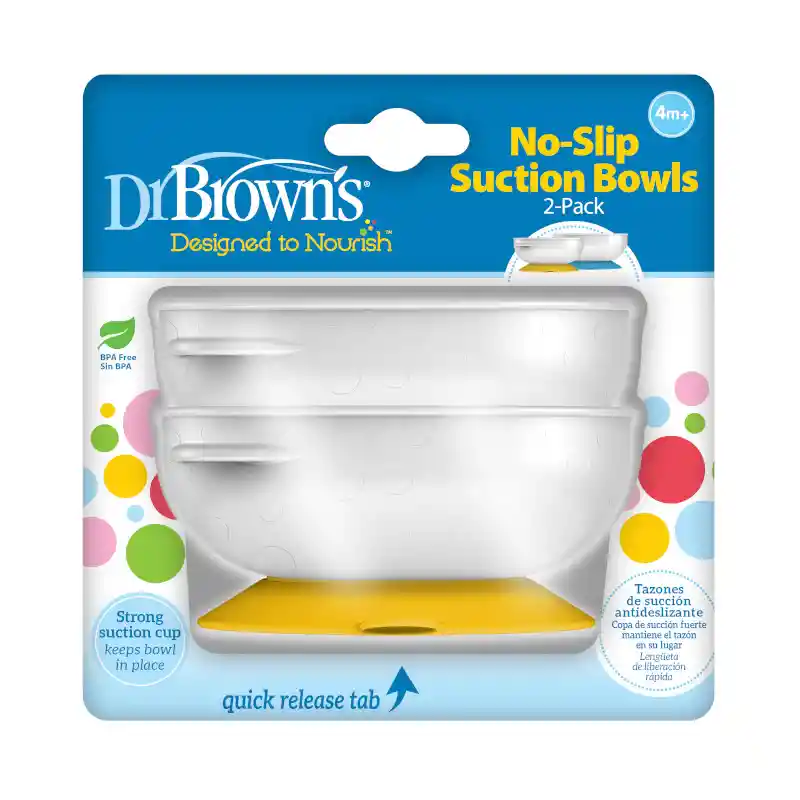 Pack 2 Bowls Antideslizantes Dr. Brown’s, es el aliado perfecto para la alimentación de tu bebé de 6 a 12 meses. Con su forma redonda y su profundidad de 5.5 cm, este set de dos bowls es ideal para servir las comidas de tu pequeño de manera cómoda y segura. Fabricados con plástico de alta calidad y libre de BPA, estos bowls garantizan la máxima seguridad y cuidado para tu bebé. Además, su superficie antideslizante evita que se deslicen o vuelquen durante la comida, brindando una experiencia más tranquila y sin derrames. Con un ancho de 13,5 cm y una altura de 5 cm, estos bowls son lo suficientemente espaciosos para contener la cantidad de comida adecuada para tu bebé. Además, su diseño de un solo compartimento facilita la organización de los alimentos y evita que se mezclen. El Pack 2 Bowls Antideslizantes Dr. Browns es el complemento perfecto para la hora de la comida de tu bebé. Su diseño práctico y funcional, junto con su calidad y seguridad, hacen de este set una opción ideal para los padres que buscan lo mejor para sus pequeños. ¡No esperes más y adquiere este pack ahora mismo!. Características: Copa de succión fuerte, mantiene el tazón en su lugar. Con bordes altos y redondeados, el tazón de succión antideslizante facilita la recogida de purés y otros líquidos más espesos cuando se alimenta al bebé con cuchara. Los bordes altos actúan como un protector contra salpicaduras para sopas y cereales. Fácil de limpiar y apilable para un almacenamiento sencillo. Apto para lavavajillas (rejilla superior) y microondas. Sin BPA.