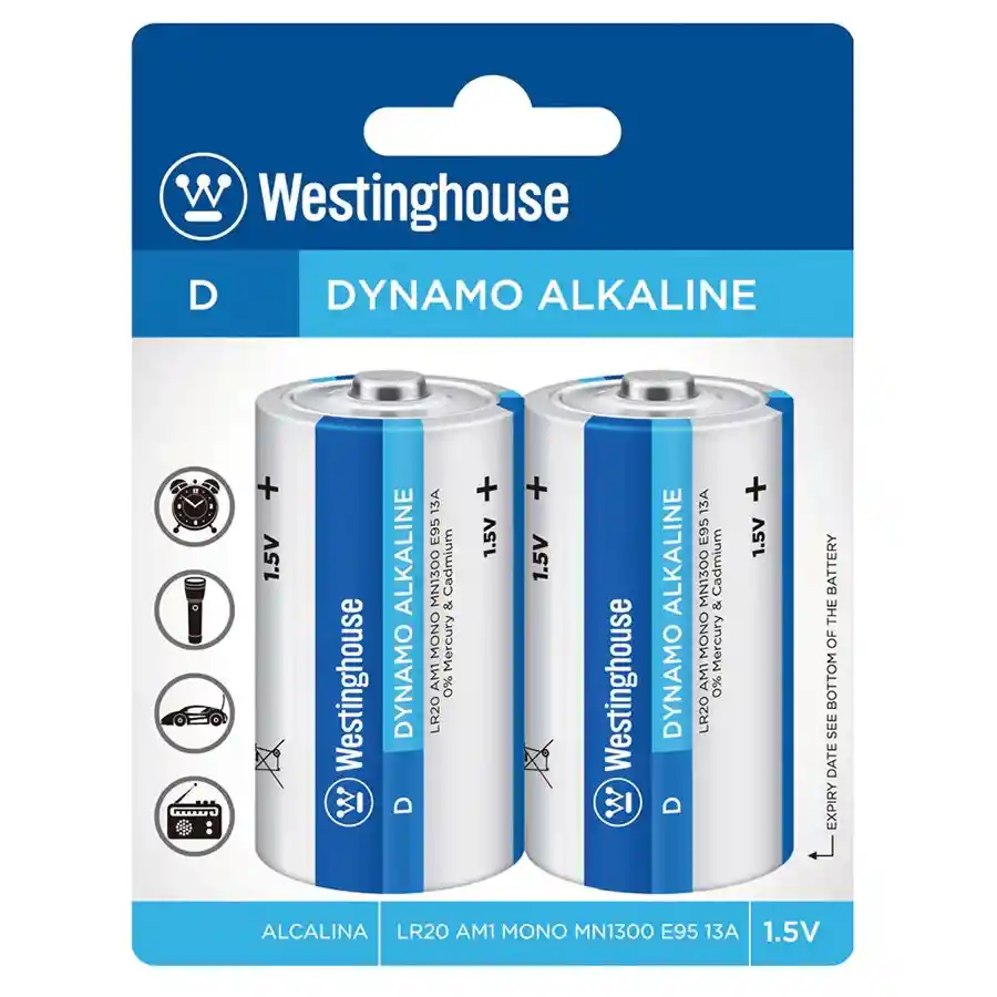 Las baterías alcalinas Westinghouse Dynamo tamaño D están inspiradas en el Westinghouse Dynamo original y ofrecen la máxima capacidad posible de baterías de un solo uso Características: DEAL PARA DISPOSITIVOS DE ALTO CONSUMO: proporciona energía duradera para juguetes, controles remotos, linternas y otros dispositivos que consumen mucha energía. VIDA ÚTIL DE 5 AÑOS: las baterías alcalinas Westinghouse Dynamo tienen una garantía de 5 años de almacenamiento ANTICORROSIÓN Y A PRUEBA DE FUGAS: la construcción multicapa protege sus dispositivos contra la corrosión y las fugas Modelo: LR20 AM1 MONO 13ª Tamaño: D Unidades: 2 Presentación: Blíster SKU: 7447