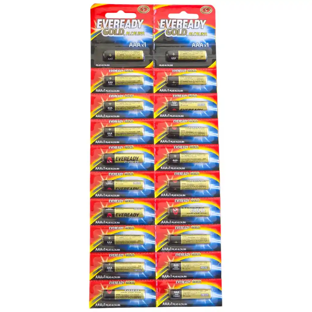 Pack de 20 Pilas Eveready AAA Alcalina Tira Prepicada – Energía Duradera y Confiable Descubre el Pack de 20 Pilas Eveready AAA Alcalina, diseñado para ofrecerte una energía accesible y de larga duración. Estas pilas son perfectas para dispositivos de consumo bajo a moderado, garantizando un rendimiento óptimo en tus aparatos cotidianos. Características Destacadas: Duración Prolongada: Las pilas Eveready AAA son ideales para de bajo consumo a moderado como controles remotos, radios, calculadoras y juguetes a motor, asegurando que tus dispositivos funcionen de manera eficiente. Fabricación de Calidad: Producto fabricado en Indonesia con estándares de calidad, con una fecha de vencimiento hasta diciembre de 2034, lo que garantiza su fiabilidad y rendimiento a largo plazo. Beneficios: Energía Confiable: Disfruta de un suministro constante de energía para tus dispositivos esenciales. Uso Versátil: Perfectas para cualquier hogar, manteniendo en funcionamiento tus gadgets y juguetes favoritos sin preocupaciones. Asegúrate de tener siempre a mano el Pack de 20 Pilas Eveready AAA Alcalina Tira Prepicada. ¡No te quedes sin energía! Marca: Eveready Gold Alcalina Tipo de pila: Alcalina Modelo: A92BP20 Tamaño pila: AAA (Triple A) Unidades: 20 Presentación: Tira prepicada SKU Tecnocenter: 8081