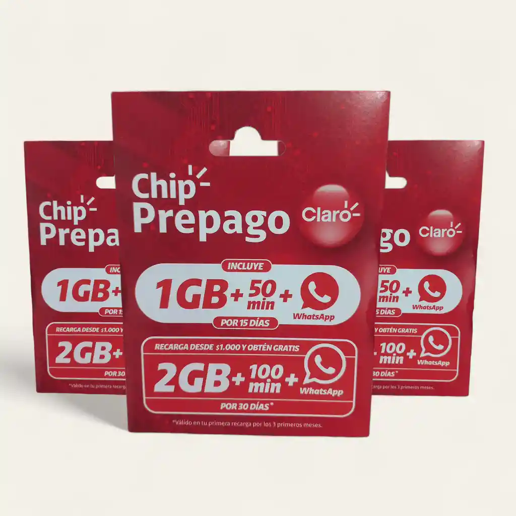 Pack de 3 chips Claro prepago con cobertura nacional 4G. Fáciles de activar y compatibles con todo tipo de teléfonos desbloqueados. Perfectos para quienes buscan mantener varias líneas activas o tener una alternativa de respaldo.