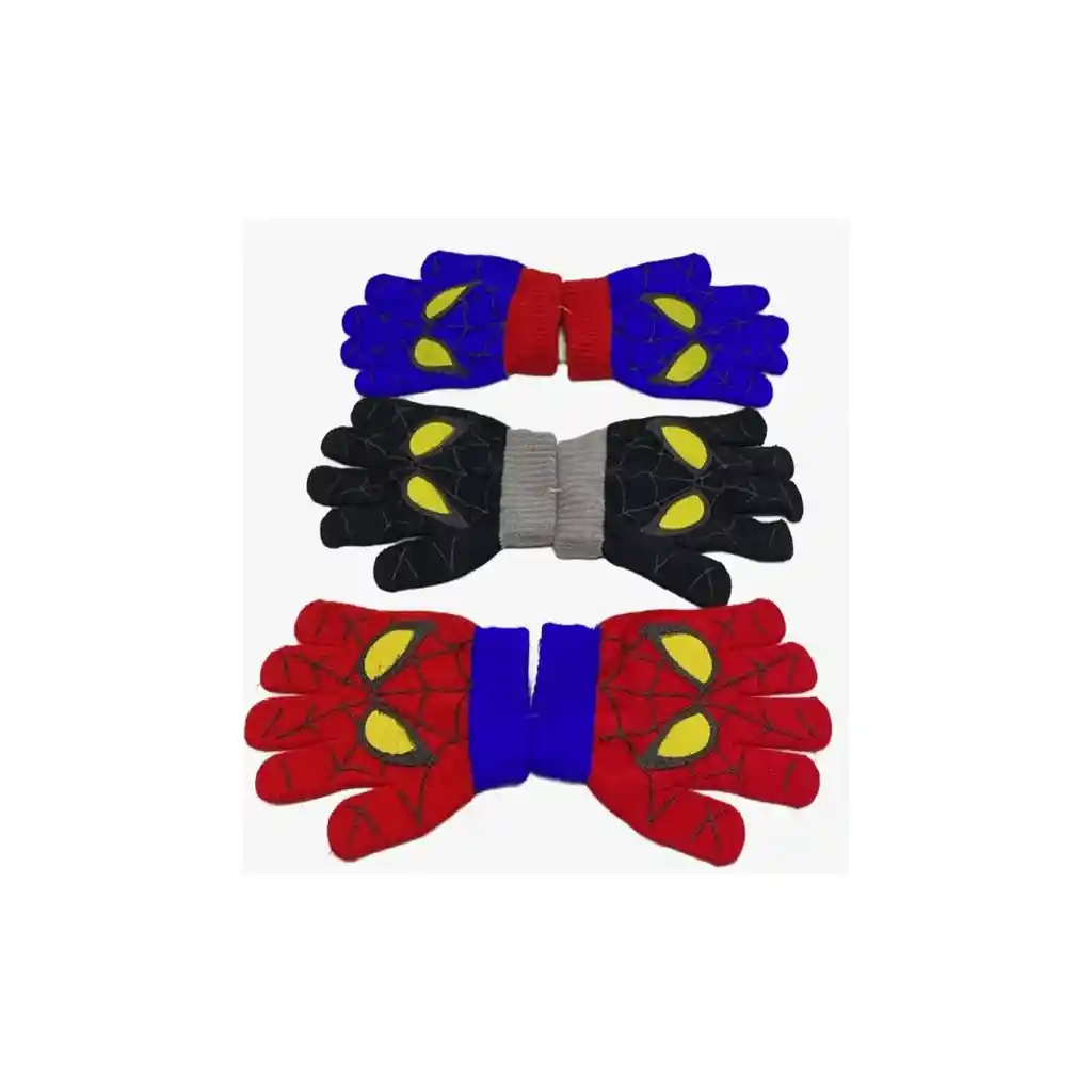 Pack 3 Guante Invierno Para Niños Hombre Araña (3-6 Años) Pack x3 Guantes Invierno Para Niños Hombre Araña (3 a 6 años) – Surtidos Mantén las manos de tus pequeños protegidas del frío con este increíble pack de guantes inspirados en el popular Hombre Araña. Ideales para niños de entre 3 a 6 años, estos guantes no solo abrigan, sino que también les encantan por su divertido diseño con ojos y telarañas bordadas. Características: Pack de 3 pares de guantes en colores surtidos. Diseño infantil tipo Hombre Araña, llamativo y divertido. Talla estándar para niños entre 3 y 6 años. Material suave, cómodo y abrigador. Tejido elástico que se adapta a las manos. Perfectos para el invierno, paseos, jardín o el colegio. Importante: Los modelos se envían surtidos, sujetos a disponibilidad. No es posible elegir combinaciones específicas de color. ¡Un pack ideal para regalar o para que tu hijo tenga varios estilos divertidos para usar cada día!.