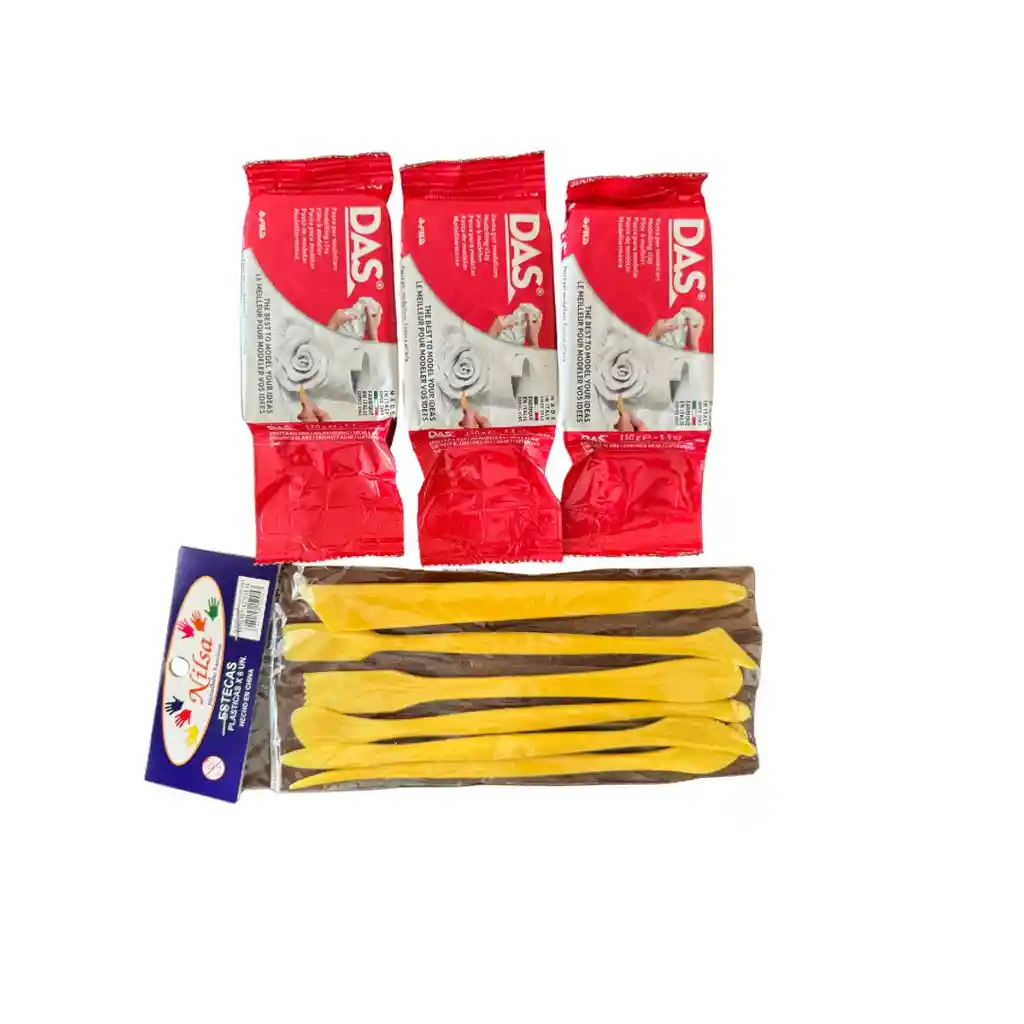 Set de tres masa das de 150 gramos c/u + set de 6 estecas para moldear.