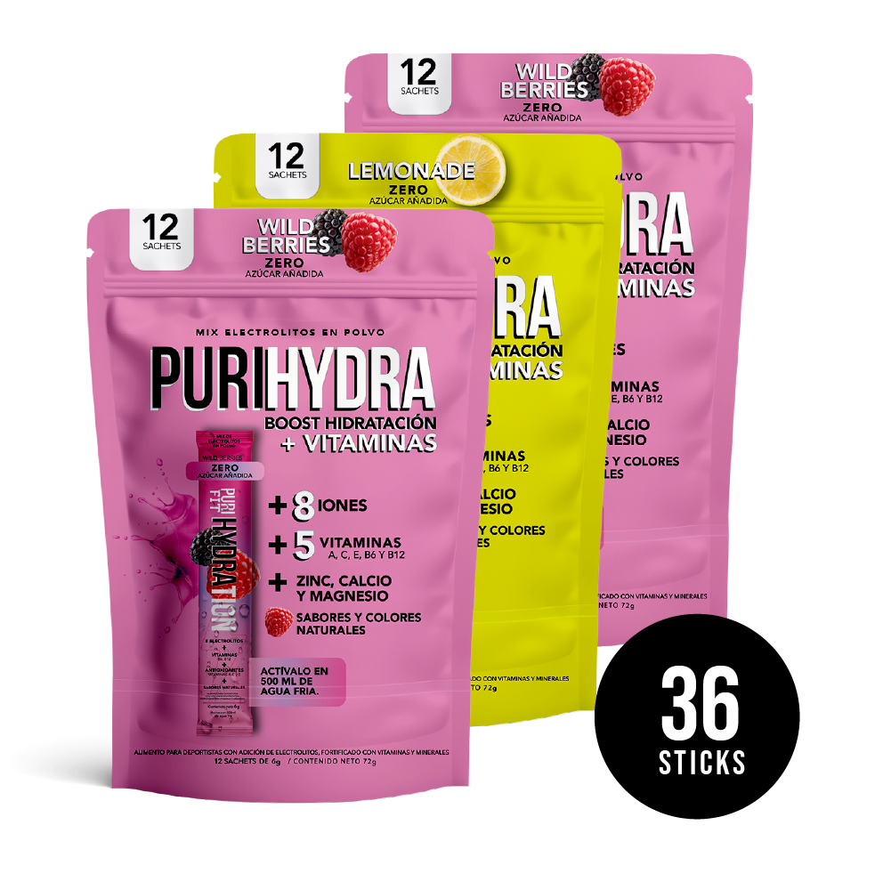 <p><em><strong>PuriHydra: Tu partner de hidrataci&oacute;n diaria</strong></em></p> <p>Hidrataci&oacute;n Avanzada con el 50% de las Vitaminas y Minerales que necesitas al d&iacute;a. Sin Az&uacute;car A&ntilde;adida, Sabores &nbsp;y Colores naturales.</p> <p>PuriHydra es la bebida isot&oacute;nica perfecta. Dise&ntilde;ada especialmente para ti, que haces deporte y &nbsp;valoras tu salud todos los d&iacute;as. PuriHydra se disuelve en 500 ml de agua fr&iacute;a y te ofrece una explosi&oacute;n de vitaminas y minerales esenciales. Con m&aacute;s del 50% de las vitaminas A, B6, B12, C y E que tu cuerpo necesita diariamente.&nbsp;</p> <p>Beneficios Clave:</p> <ul> <li><strong>Energ&iacute;a y Vitalidad</strong>: Con vitaminas B6 y B12, convierte los alimentos en energ&iacute;a pura.</li> <li><strong>Belleza Natural: </strong>Vitaminas A, C y E para una piel radiante y saludable.</li> <li><strong>Hidrataci&oacute;n &Oacute;ptima: </strong>Iones esenciales como potasio y sodio para mantener una hidrataci&oacute;n avanzada.</li> </ul> <p>Para quienes entrenan, compiten o buscan sentirse mejor cada d&iacute;a: PuriHydra es tu partner de hidrataci&oacute;n diaria.</p> <p><strong>F&aacute;cil de Usar:</strong> Mezcla un sachet de PuriHydra en 500 ml de agua fr&iacute;a, revuelve e hidr&aacute;tate. Perfecto para llevar contigo a donde vayas, desde el gimnasio hasta la oficina o para despu&eacute;s de una fiesta.</p> <p><em>"Porque mereces sentirte incre&iacute;ble cada d&iacute;a. PuriHydra: Tu partner de hidrataci&oacute;n diaria. Con m&aacute;s del 50% de tus necesidades diarias de vitaminas esenciales.&rdquo;</em></p>