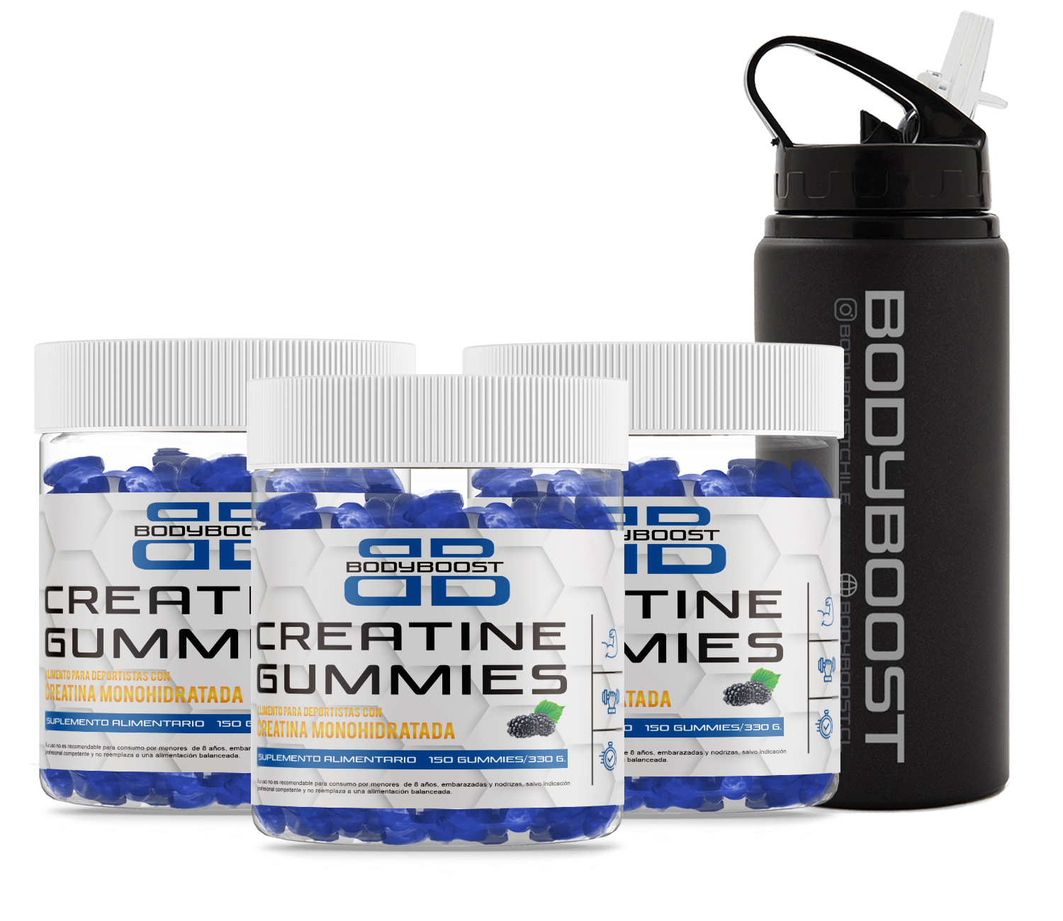 Pack 3 Creatine Gummies + Botella Gratis Creatina Sabor Blue Raspberry