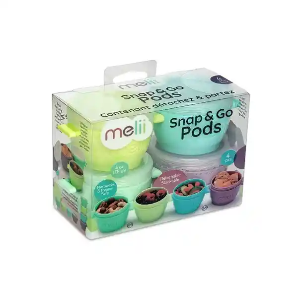 El pack de cuatro contenedores Snap Go de Melii son ideales tanto para llevar pequeñas colaciones como para guardar y congelar las porciones de alimento de tu bebé. Los contenedores se unen entre sí horizontalmente y se apilan verticalmente, lo que facilita su instalación en el congelador. Aptos para el lavavajillas y muy fáciles de limpiar. Cubierta hermética y a prueba de fugas ayuda a prevenir derrames y quemaduras por congelación Capacidad: 4 oz/118 ml Apto para microondas, congelador y estante superior para lavavajillas. Sin BPA, sin plomo, sin PVC, sin cadmio. INFORMACIÓN ADICIONAL: Pack de cuatro contenedores Snap Go. Perfecto para snacks y colaciones. Ideales para guardar y congelar las papillas de tu bebé. Tapa hermética y a prueba de fugas mantiene la frescura y evita la suciedad. Capacidad: 4 oz/118 ml. Apto para microondas, congelador y estante superior para lavavajillas. Al usar en microondas sacar la tapa. Sin BPA, sin plomo, sin PVC, sin cadmio. Los contenedores se unen horizontalmente y se apilan verticalmente.