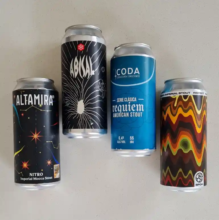Pack de cervezas locales. Incluye: 1 Altamira Nitro 473cc + 1 Coda Requiem 470cc + 1 Granizo Abisal 473cc + 1 Spoh Rispect 470cc