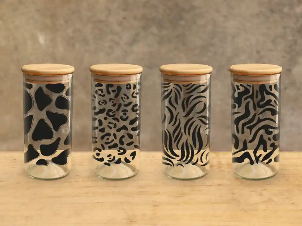 Ahora vas a poder ordenar tus cositas con más estilo con nuestros contenedores! Son ideales para guardar alimentos como cereales, pastas, azúcar, o cualquier cosa de otro espacio del hogar. La mejor parte? Cuando se vacíe tu frasco tendrás un lindo vasito 😍 Cada uno incluye una tapa hermética de bambú. El precio es por el pack de 4 unidades