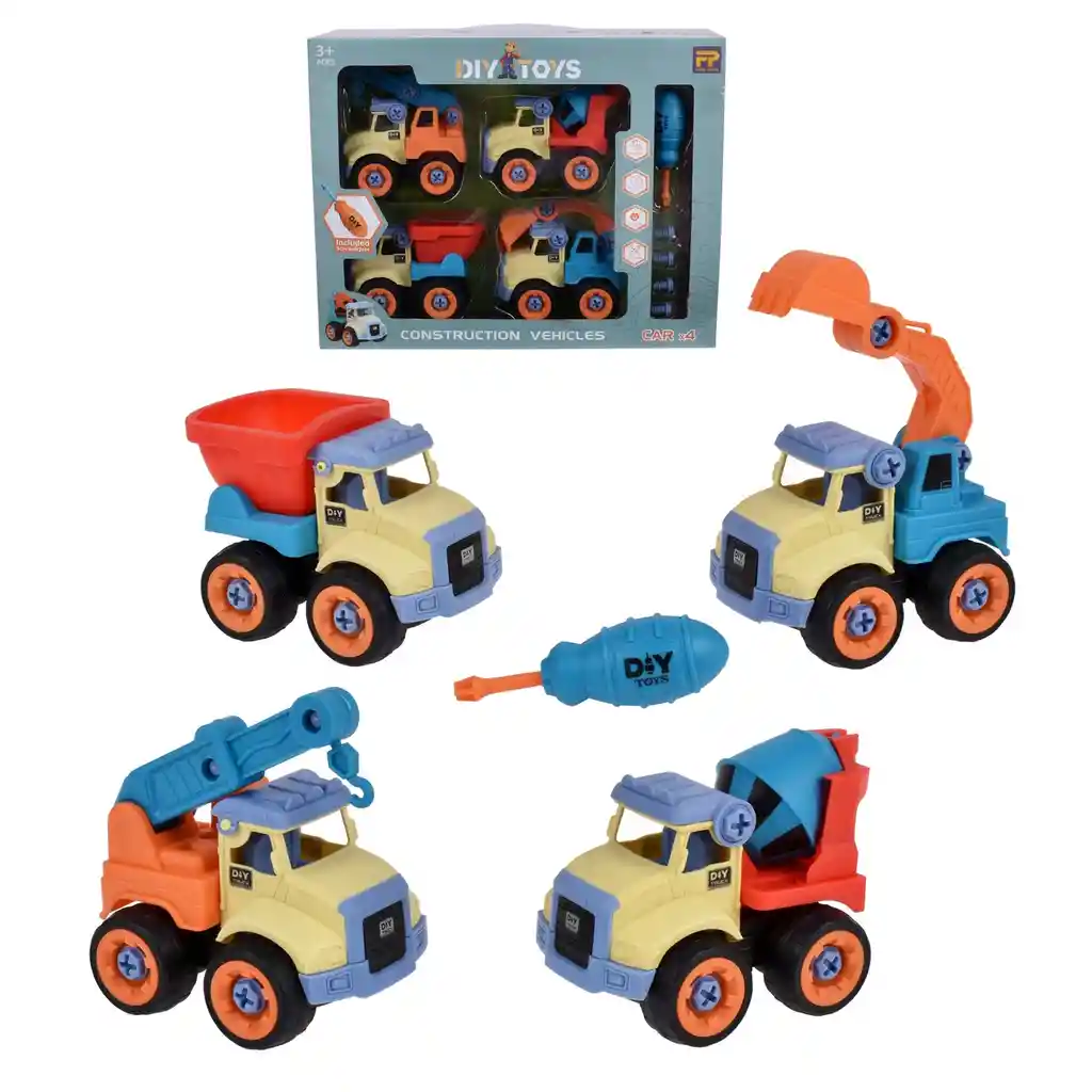 Lo mejor de ser niño es lo fácil y divertido que puede ser aprender y es más divertido si lo hacen jugando. Con este emocionante Pack de 4 vehículos armables, los más pequeños de la casa podrán armar y desarmar sus propios vehículos y otra vez. Cada vehículo cuenta con ruedas de acción libre que le permitirán deslizarlos sobre cualquier superficie. Con este juguete tus pequeños aprenderán a conocer los fundamentos de la comunicación y la cooperación; fomentando la confianza, la amistad y el desarrollo lingüístico. También fomenta a que creen un juego imaginativo promoviendo la historia de fantasía, el juego de rol y la creatividad. Incluye 4 vehículos y 1 destornillador.