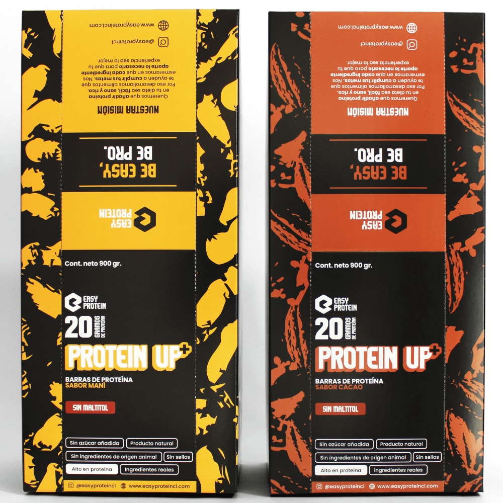 <p><strong data-start="125" data-end="147">Barras Protein Up+</strong></p> <p><br data-start="147" data-end="150">20g de proteína real, sin hinchazón y con un sabor increíble. Hechas con ingredientes naturales y endulzadas con alulosa.</p> <p>¡Ricas, livianas y funcionales!</p> <p>Pack de 40 barritas, 20 sabor maní y 20 sabor cacao <br><br><span style="text-decoration: underline;">Sabor Maní</span><br>Energía: 154 kcal<br>Proteínas: 20 g<br>Carbohidratos disponibles: 2 g<br><br><span style="text-decoration: underline;">Sabor Cacao</span><br>Energía: 140 kcal<br>Proteínas: 20 g<br>Carbohidratos disponibles: 2 g<br><br><br><br></p>