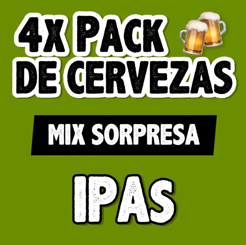 "4our Pack IPAs Mix sorpresa de 4 Cervezas 🌿 Pack Sorpresa IPA – “Amargor con Amor” Para los valientes, los que disfrutan lo intenso, llega este pack IPA con cuatro bombas lupuladas que te van a volar la cabeza… en el buen sentido. Cada lata es una sorpresa, pero te podís encontrar con West Coast IPA, Session, American IPA y más, con aromas a cítricos, resinas, pino, frutas tropicales y ese amargor que te abraza y no te suelta. 🔥 Si te gusta la chela con actitud, este es tu mix. 💡 No recomendado para quienes dicen ""esto está muy amargo""... aquí se viene a disfrutar del punch."