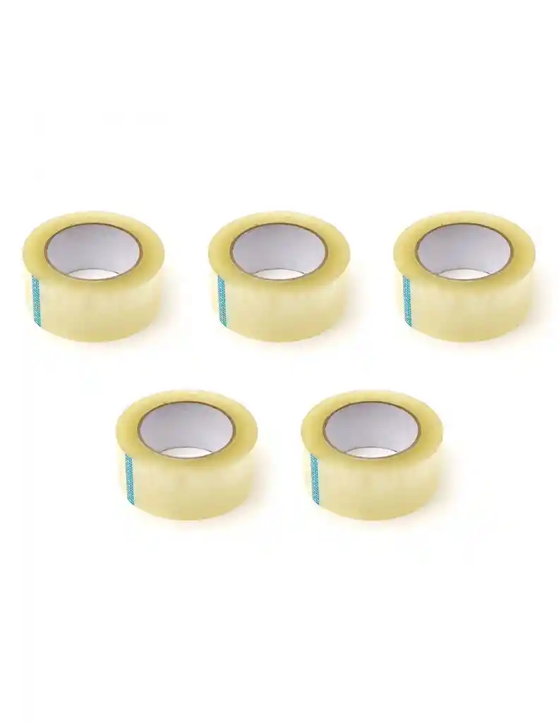 Pack 5 unidades cinta de embalaje transparente estándar de alta calidad 200mts c/u, ideal para todo tipo de embalajes en general, encomiendas, etc. Precio corresponde a 5 unidades de 200mts.